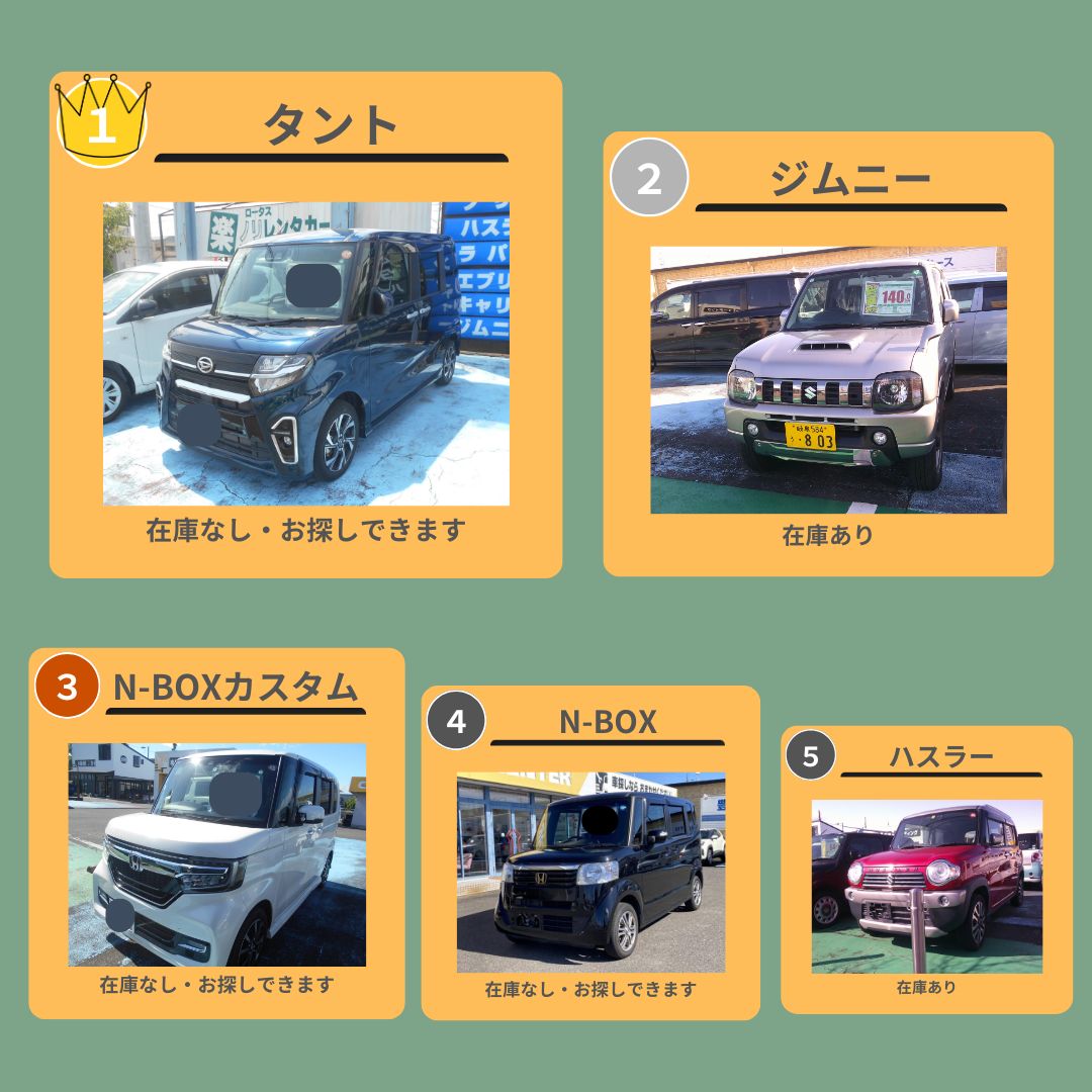 2位ジムニー、5位ハスラーは店頭に展示しています。