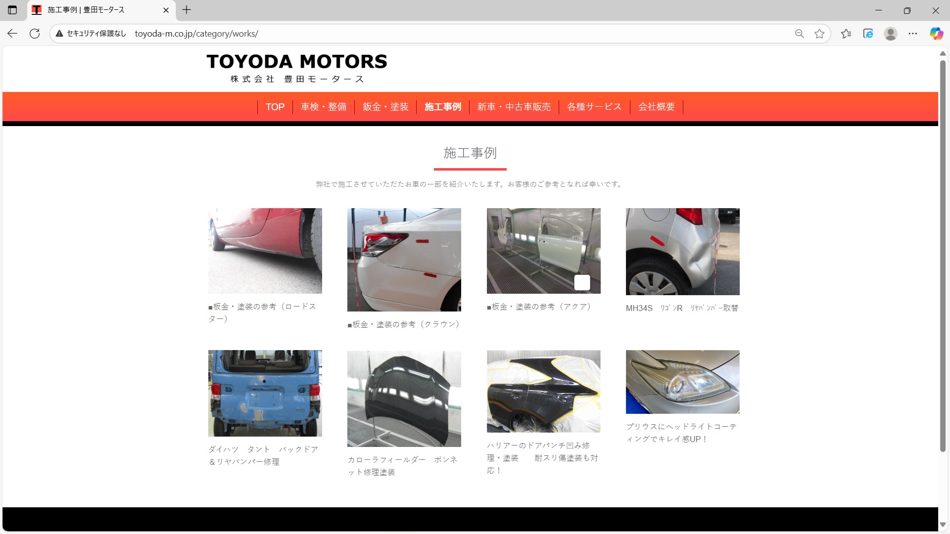 弊社ホームぺージの「施工事例」に参考として修理の写真等を