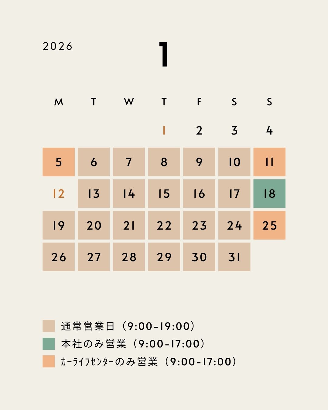 本社工場とカーライフセンター(展示場)は休業日が異なります。