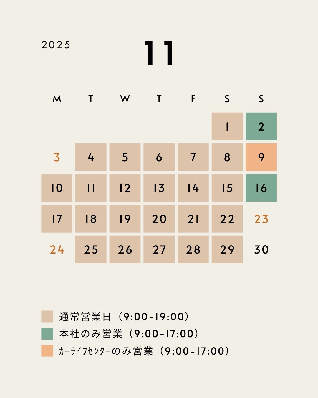 本社工場とカーライフセンター(展示場)は休業日が異なります。