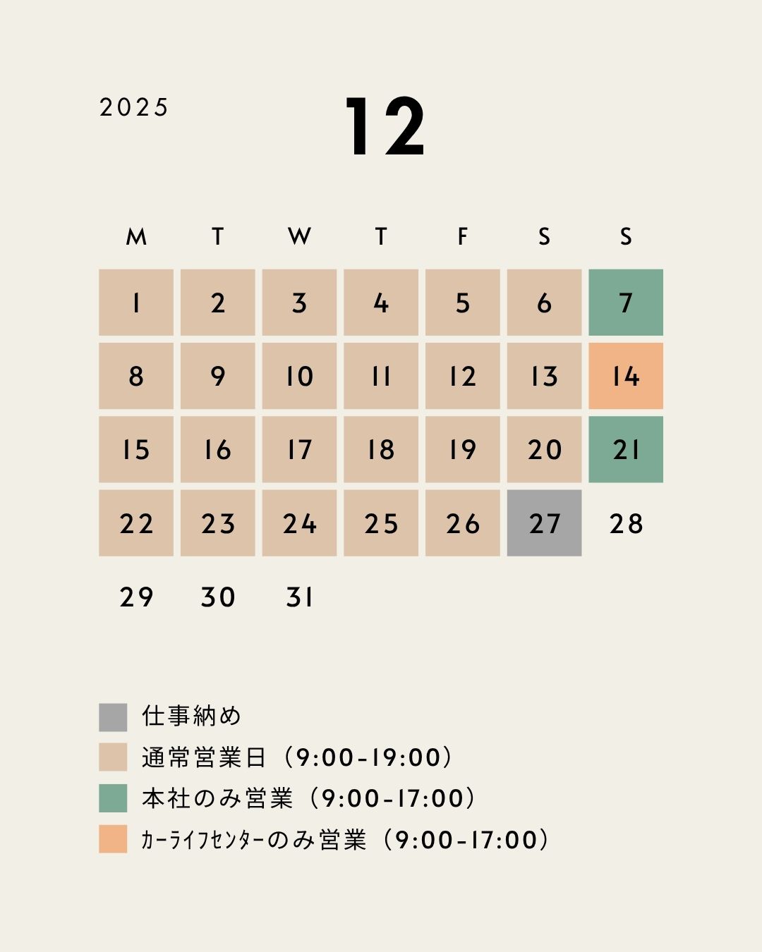 本社工場とカーライフセンター(展示場)は休業日が異なります。