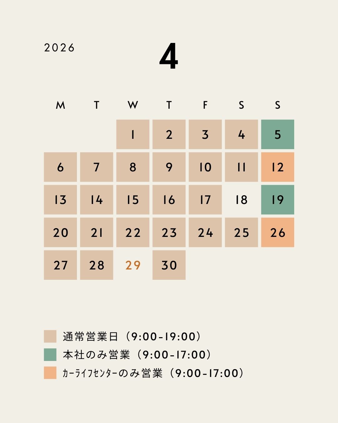 本社工場とカーライフセンター(展示場)は休業日が異なります。